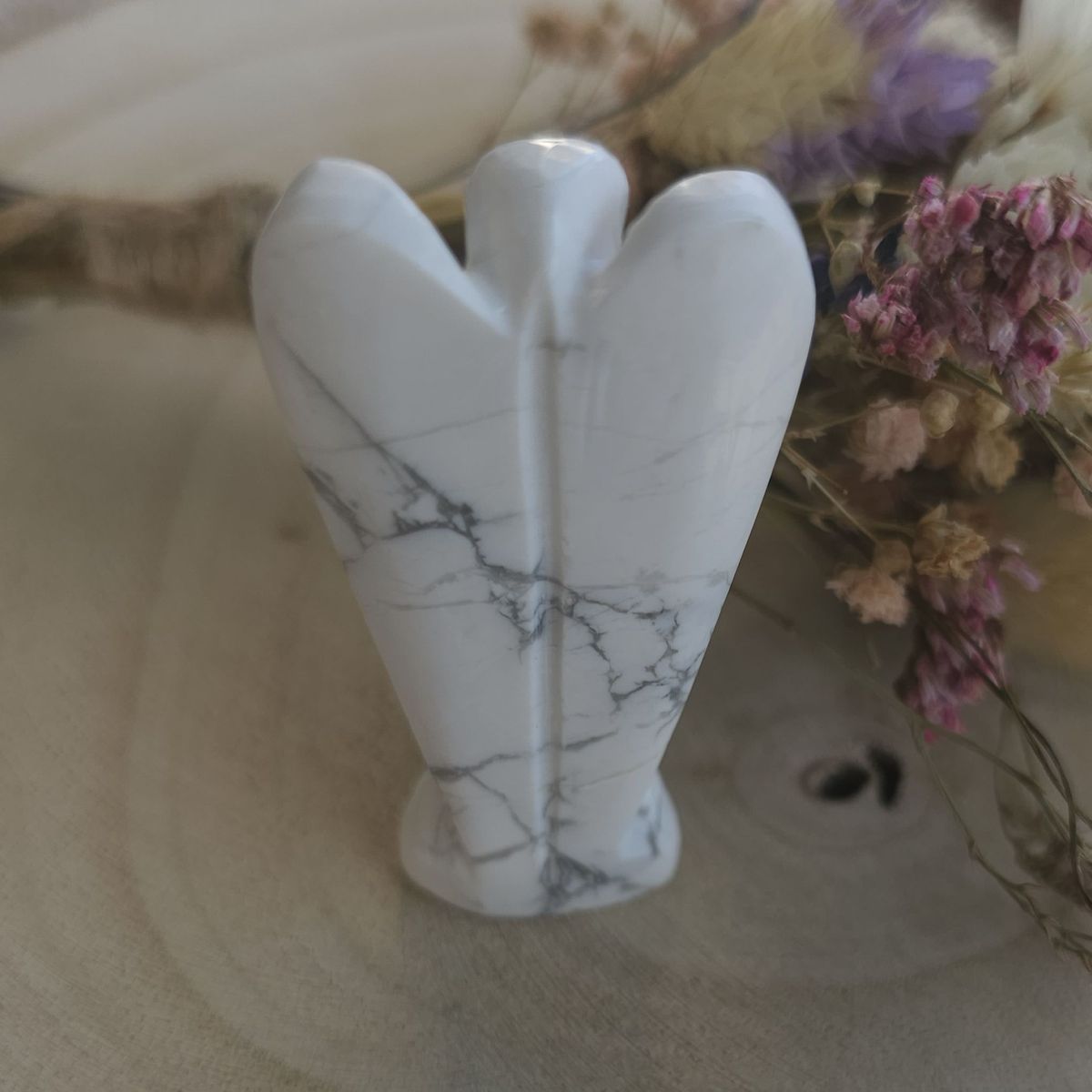 Angel de Piedra Preciosas Tallado a mano – Howlita Blanca