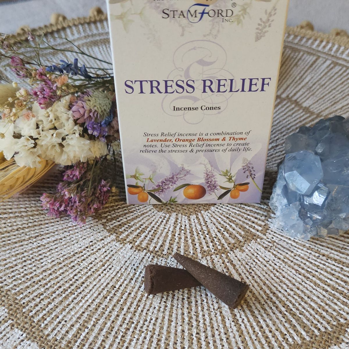 Un clásico entre los inciensos, Alivio del Estrés de Stamford: ¡relajante y reconfortante, perfecto para momentos de calma y serenidad! Contiene 15 conos de incienso aprox.
