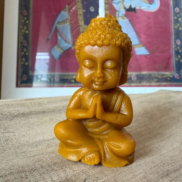Esta encantadora mini vela en forma de Buda es una auténtica pieza artesanal, fabricada con cera de miel 100% natural. Con unas dimensiones compactas de 6,5 cm de alto y 3,5 cm de ancho, es perfecta para crear un ambiente relajante y espiritual en cualquier espacio.